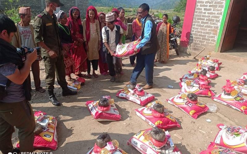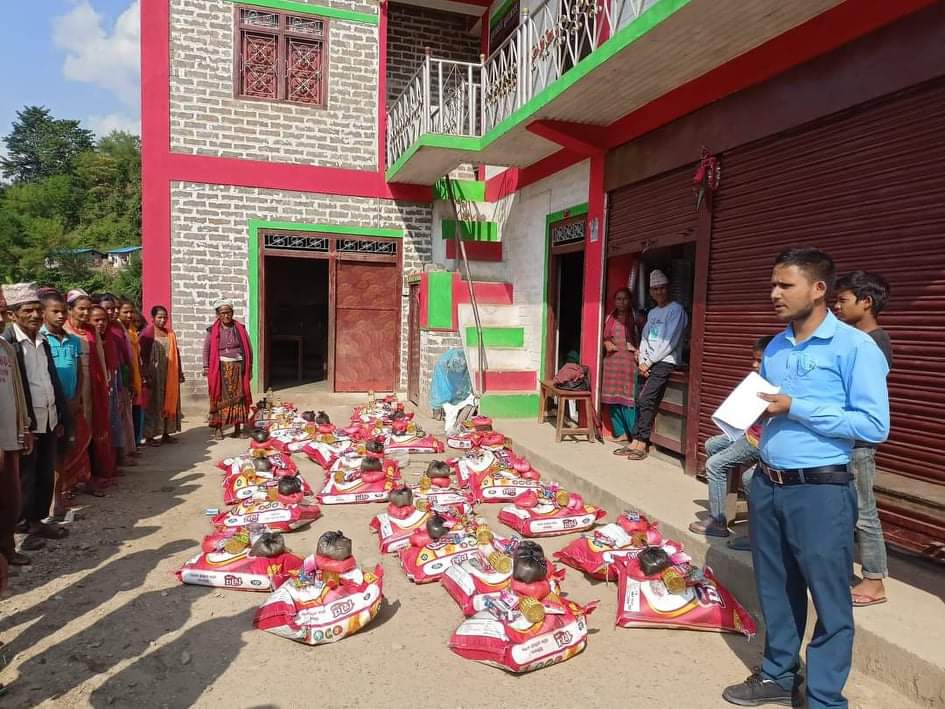 रुकुम पश्चिमको चौरजहारिमा शुक्रवारदेखी खाद्यान्न बितरण कार्य सुरु भएको छ । मानव बिकास तथा सामुदायिक सेवा अन्तरगत आशा बाल बिकास सेवा सिबिआरको आर्थिक सहयोग र चौरजहारी नगरपालिकाको समन्वयमा खाध्यान्न बितरण कार्य गरिएको हो । तिहारलाई लक्षित गरि चौरजहारी नगरपालिका भित्रका १४ वटा वडामा बसोबास गर्ने अपाङ्गता भएका ब्यक्तिका परिवार, दैनिक ज्याला मजदुरी गर्ने ब्यक्तिहरुलाई खाद्यान्न बितरण गरिएको हो । शुक्रबार देखि सुरु गरिएको खाद्यान्न बितरण कार्यक्रम मा नगर भित्र का १३० घरपरिवारलाई बितरण गर्ने लक्ष राखिएको सिबिआर सहजकर्ता सन्देश जैसिले जानकारी दिनु भयो । उक्त कार्यक्रममा प्रती परिवार १ बोरि चामल, दाल, नुन, चिनी तेल चियापत्ती बितरण गरिएको छ । तेसैगरी स्वास्थ्य सरसफाइ सामाग्री अन्तरगत नुहाउने साबुन लुगा धुने साबुन , मञ्जन, ब्रस , नङ्कट बितरण गरिएको छ । खाद्यान्न बितरणको दोस्रो दिन १,२,३,४,५,७,८ र ९ का ५८ जना घरपरिवार लाई खाद्यान्न बितरण गरिएको छ भने वडा न ६,१०,११,१२,१३ र १४ का ४५ घरपरिवारलाई सोमबार बितरण गर्ने कार्यक्रम रहेको जैशिले जानकारी दिनु भयो।