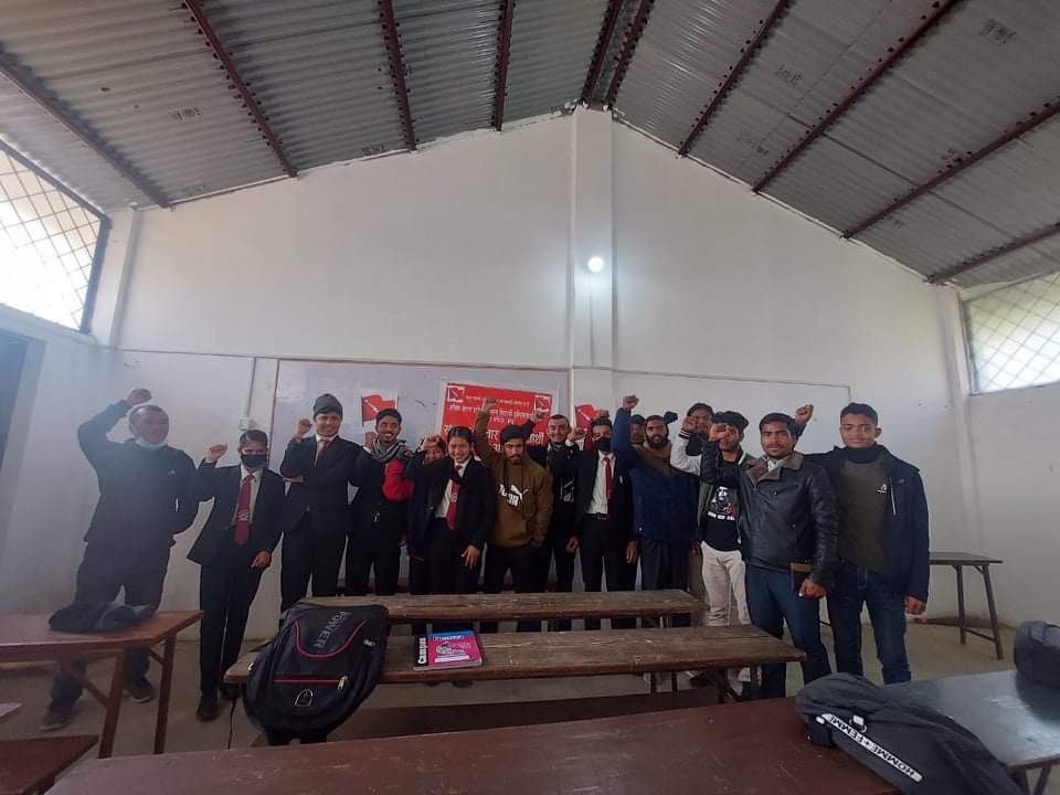 उक्त कार्यक्रम ले अध्यक्षमा अनिल कुमार खड्का , उपाध्यक्षमा नवराज शर्मा,कुसुम केसि,सचीवमा कमल परियार , सह सचीवमा जालान्दार गिरि ,अबिनाश पुन मगर र कोषाध्यक्षमा सौगात बोहरा लाई सर्वसम्मत चयन गरेको छ। भने उक्त कार्यक्रममा बिशिस्ट अतिथी खगेन्द्र जि यम,जिल्ला का नेता लोकेन्द्र डाङ्गी,शन्तोस शर्मा,केसब राना,लगायतले मन्तब्य राख्नु भएको थियो भने जिल्ला बाट विद्यार्थी नेता लोकेन्द्र केसि, निशल उपस्थित हुनुहुन्थ्यो