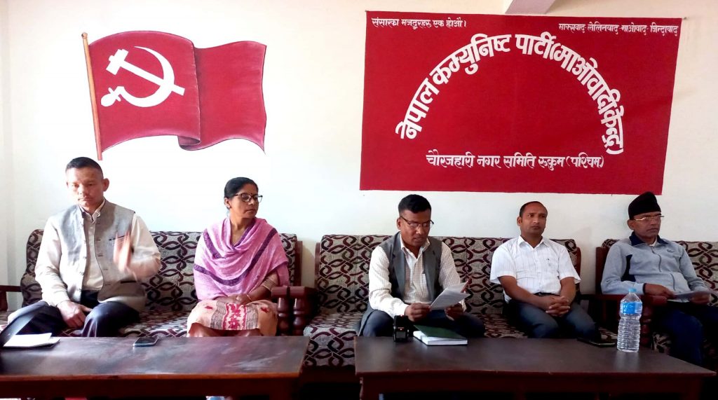 नेकपा माओवादी केन्द्र चौरजहारी रुकुम पश्चिमले आज प्रतिबद्धता सार्वजनिक गरेको छ । माओबादी केन्द्रको तर्फबाट नगर प्रमुखका उम्मेदवार पुष्प वादीले प्रतिबद्धता पत्र सार्वजनिक गर्नुभएको हो ।