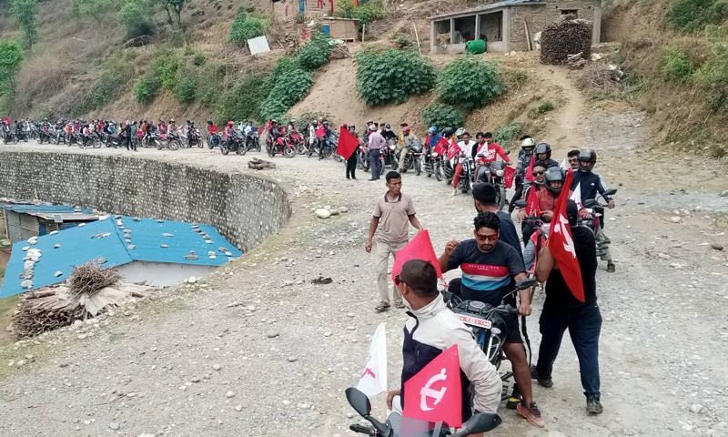र्याली प्रदेश सदस्य छितिज कार्की, बालकृष्ण बुढाथोकी, नेपाल नेपाल कम्युनिस्टका नगर कमिटी उपाध्यक्ष सुदास स्वर्णकार, अध्यक्ष एलबी कटुवाल, उपाध्यक्ष रेसम केसिलगाएत सहभागीता मोटरसाइकल र्याली सम्पन्न गरिएको हो ।