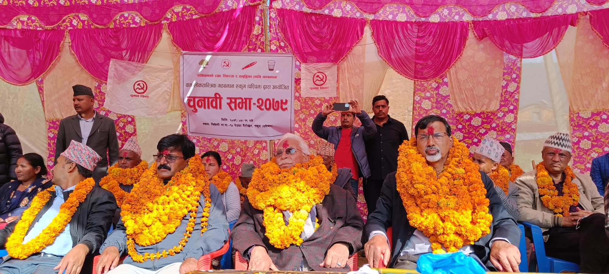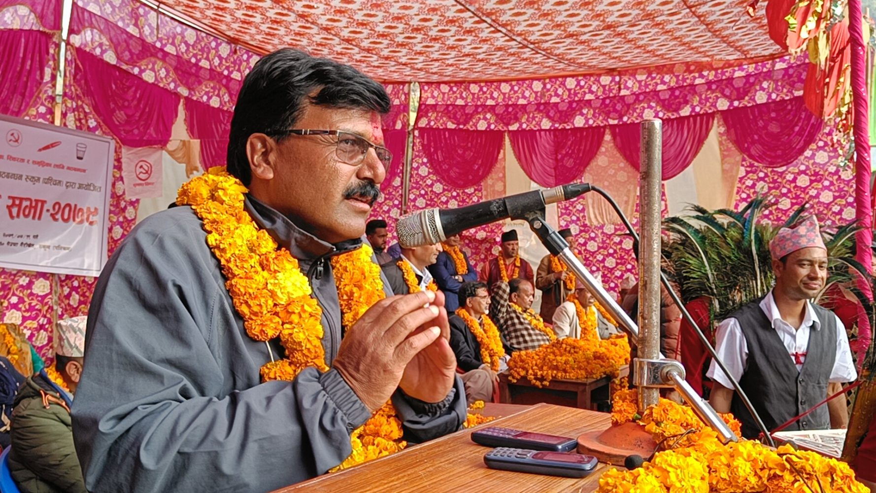 नेकपा माओवादी केन्द्रका गणेश खड्काको अध्यक्षतामा भएको कार्यक्रममा नेपाली काँग्रेसका थबहादुर खड्काले स्वागत मन्तब्य राख्नुभएको थियो ।