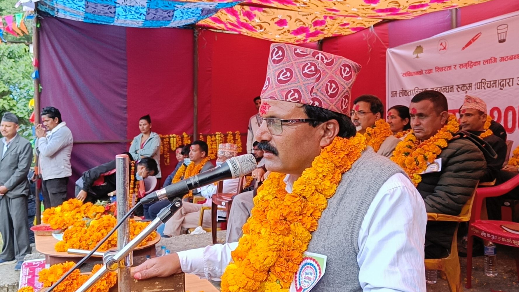 त्यस्तै सभालाई नेकपा माओवादी केन्द्रका केन्द्रीय सदस्य गोपाल शर्मा, नेकपा एकीकृत समाजवादी पार्टीका केन्द्रीय सदस्य देवि ओली, माओवादीका समानुपातिक प्रतिनिधि सभा सदस्यका उम्मेदवार प्रेमकुमारी सुनार, प्रदेश समानुपातिक उम्मेदवार झक्कुप्रसाद घर्ती, नेपाली कांग्रेसका कर्णाली प्रदेश सदस्य थलबहादुर खड्का, नेपाल समाजवादी पार्टीका केन्द्रीय सदस्य अमर ओलीले पनि संबोधन गर्नुभएको थियो ।