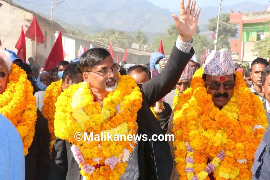 रुकुम पश्चिममा सरकारका अर्थमन्त्री एवं माओवादी केन्द्रका उपमहासचिव जनार्दन शर्मा ‘प्रभाकर’ भारी मतान्तरले निर्वाचित भएका छन्।