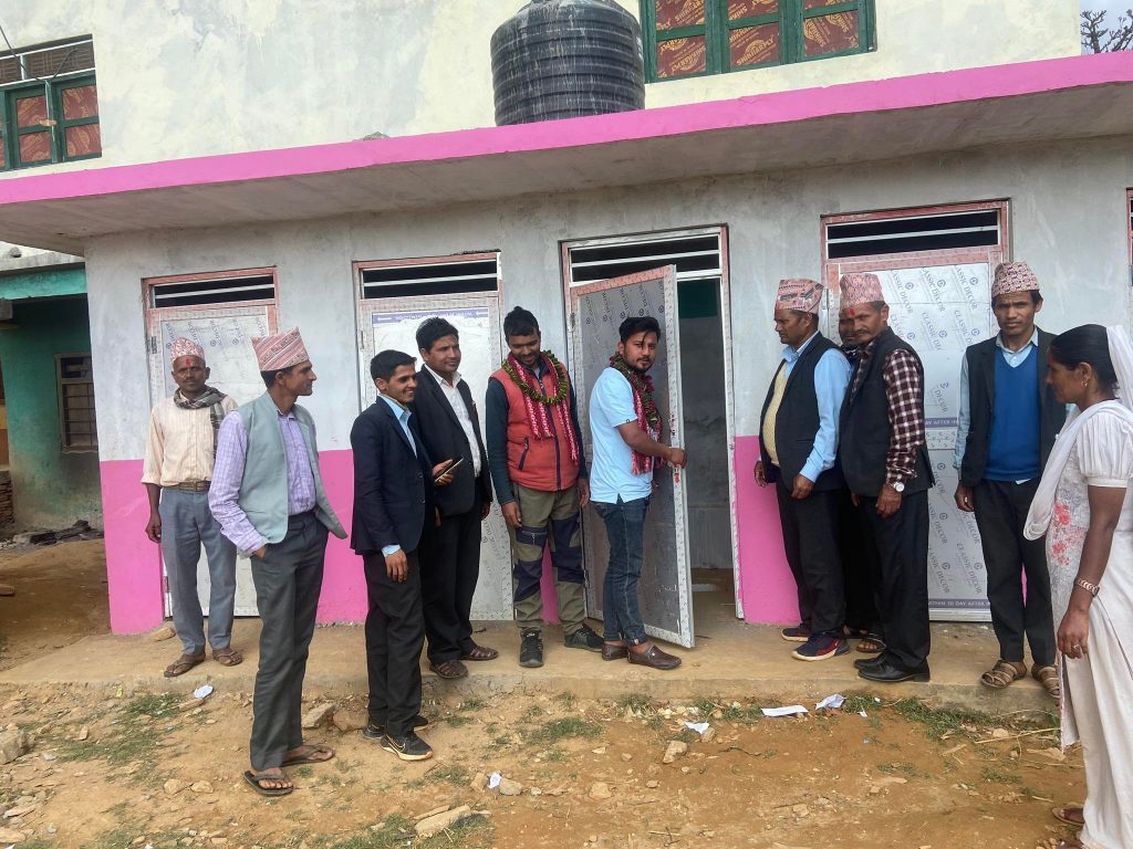 सामुदायिक विद्यालय जनसेवा आधारभुत विद्यालयमा ३ कोठे र जनकल्यान माध्यामिक विद्यालयमा ५ कोठे गरी ७ कोठे आधुनिक छात्र, छात्रा तथा अपांगता मैत्री शौचालय निर्माण कार्य सम्पन्न पश्च्यात शुक्रवार विद्यालयले आयोजना गरेको एक औपचारिक कार्यक्रमका विच हस्तान्तरण गरिएको परियोना अधिकृत आषिश आचार्यले जानकारी दिनुभयो ।