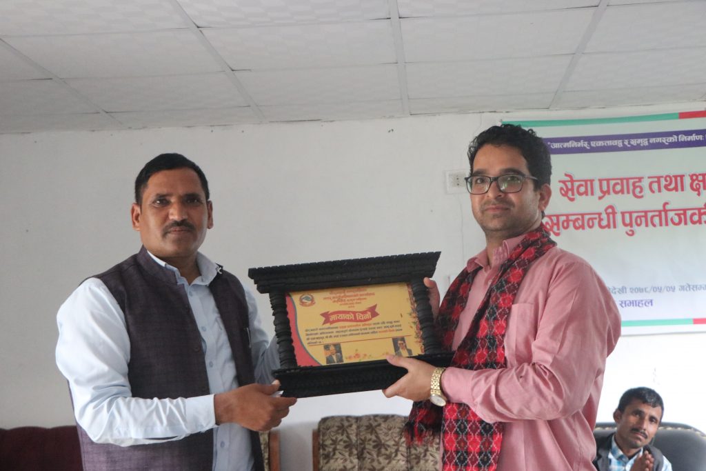 त्यसैगरी निर्वतमान प्रमुख प्रशासकिय अधिकृत के.सीले चौरजहारीमा जति सम्भावनाहरु छन् त्यति नै चुनौतिहरु पनि रहेको बताउँदै चुनौतिहरुको पार गर्दै अगाडि बढेमा पक्कै पनि सुन्दर र समृद्ध नगर निर्माणमा ढिलाइ नहुने बताउनु भयो । चौरजहारीमै बसेर अँझै धेरै बिकासका कार्यक्रमहरु सञ्चालन गर्ने तथा बाकी रहेका कामहरुलाइ सम्पन्न गर्ने चाहाना हुँदा हुँदै अध्यनको शिलशिलामा बाहिर जानुपर्ने भएको बताउदै जहाँ सरुवा भएपनि चौरजहारीको बिकासका लागि सदैव साथ, समर्थन र सहयोग गरिरहने बताउँदै बिकास निर्माणमा सम्पुर्ण नगरबासीहरुलाई आ आफ्नो स्थानबाट हातेमालो गर्दै जुट्नुपर्ने कुरामा जोड दिनुभयो ।