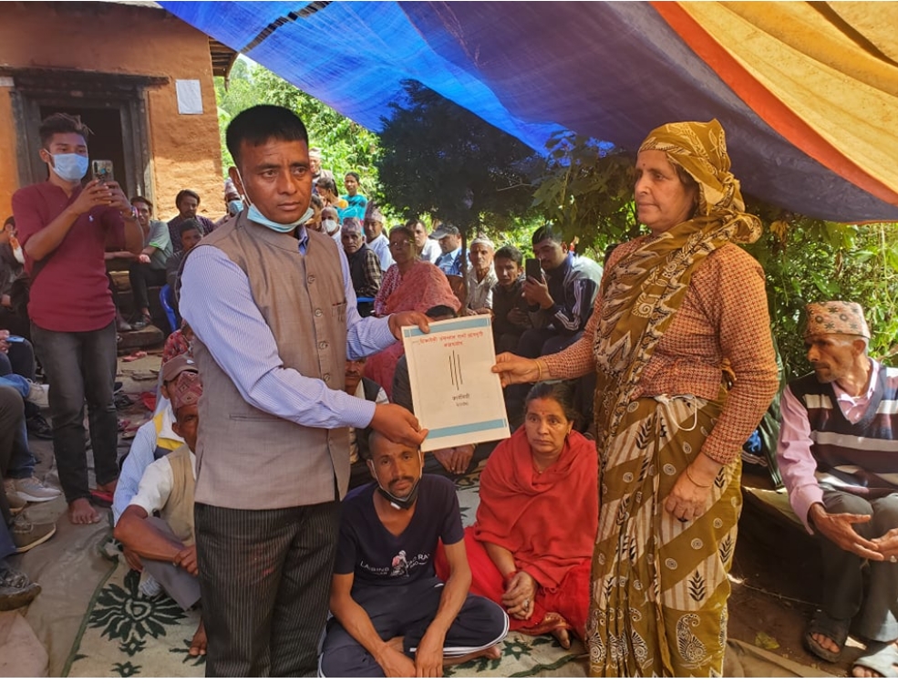 अक्षयकोषको हस्तान्तरण दिबङगत बुवा आमाकी जेठी छोरी तथा जनयुद्धका सहिद पुर्ण प्रसाद शर्मा कार्बनकी जीवन सङगीनी सरस्वती शर्माले विद्यालयका प्रअ देबेन्द्र रावतलाई गरिन ।