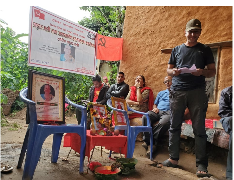 नेकपा सल्यानका इन्चार्ज समेत रहेका शर्मा र नेतृ बिकले आमा तथा बुबाको समझनामा कुमाख २ रुमालगाउँमा रहेको घरमा श्रद्धाञ्जली सभामा अक्षयकोष स्थापना गरेका हुन ।